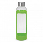 Deluxe 600ml borosilicate glass drink bottle which features a protective soft touch silicone sleeve and a secure screw on stainless steel lid that can be laser engraved with a logo. Borosilicate is a lightweight glass that is exceptionally strong and shatter resistant. Glass is a natural choice for a clean, pure taste and it offers a safe and eco-friendly alternative. This product is not intended to be used with carbonated or hot liquids and handwashing is recommended